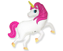 Balon foliowy 14' na patyczku - Jednorożec biało-różowy