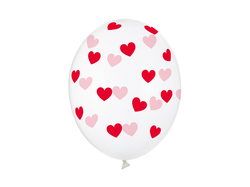 Balon 14" z nadrukiem "Serca" przeźroczysty/czerwony 1 sztuka