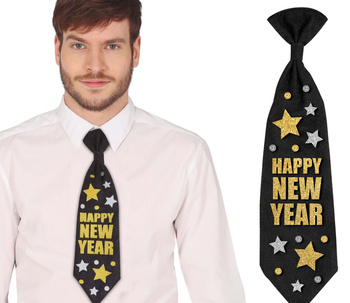 Krawat noworoczny HAPPY NEW YEAR czarny 38cm