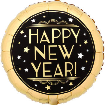Balon foliowy HNY 17" Happy New Year, satin vintage