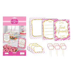 Dekoracja Bufetu: Etykiety, winiety, pikery - różowe 12 sztuk