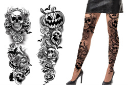 Rajstopy cieliste "Tatuaże: dynia, czaszka"