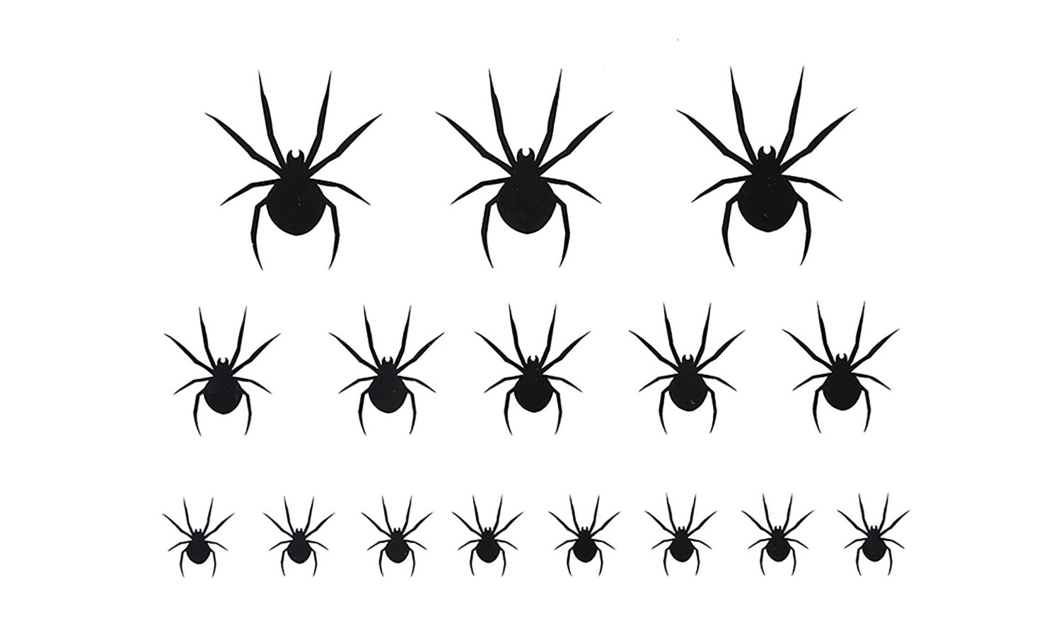 W zestawie 2 arkusze po 16 pająków, łącznie: