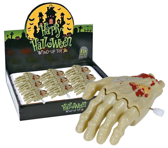 - Nakręcana zabawka w formie odciętej dłoni. Figurka po nakręceniu porusza się oraz rusza palcami. Humorystyczny gadżet na Halloween.