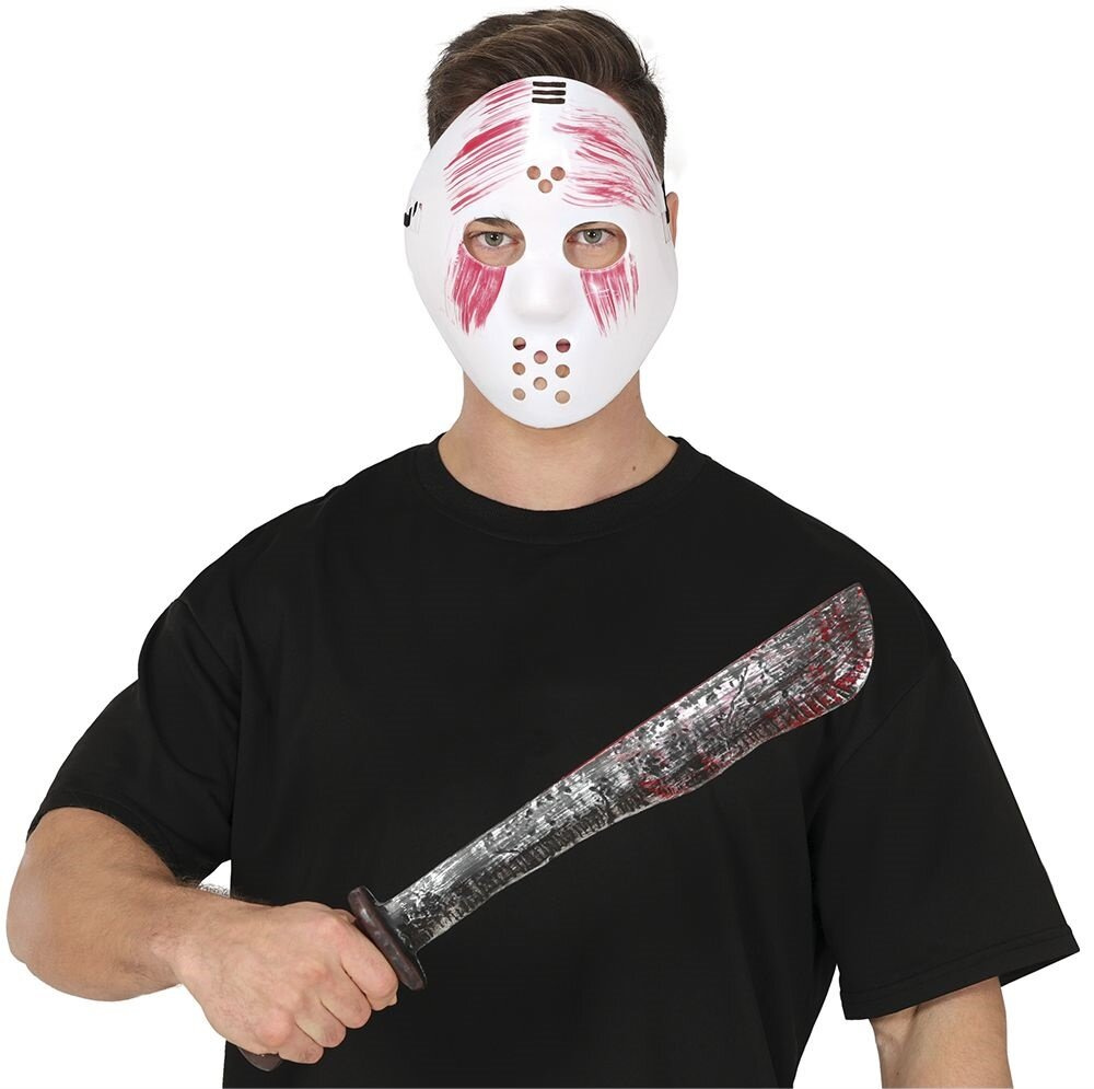 Maska plastikowa + Maczeta 54cm biała z krwią