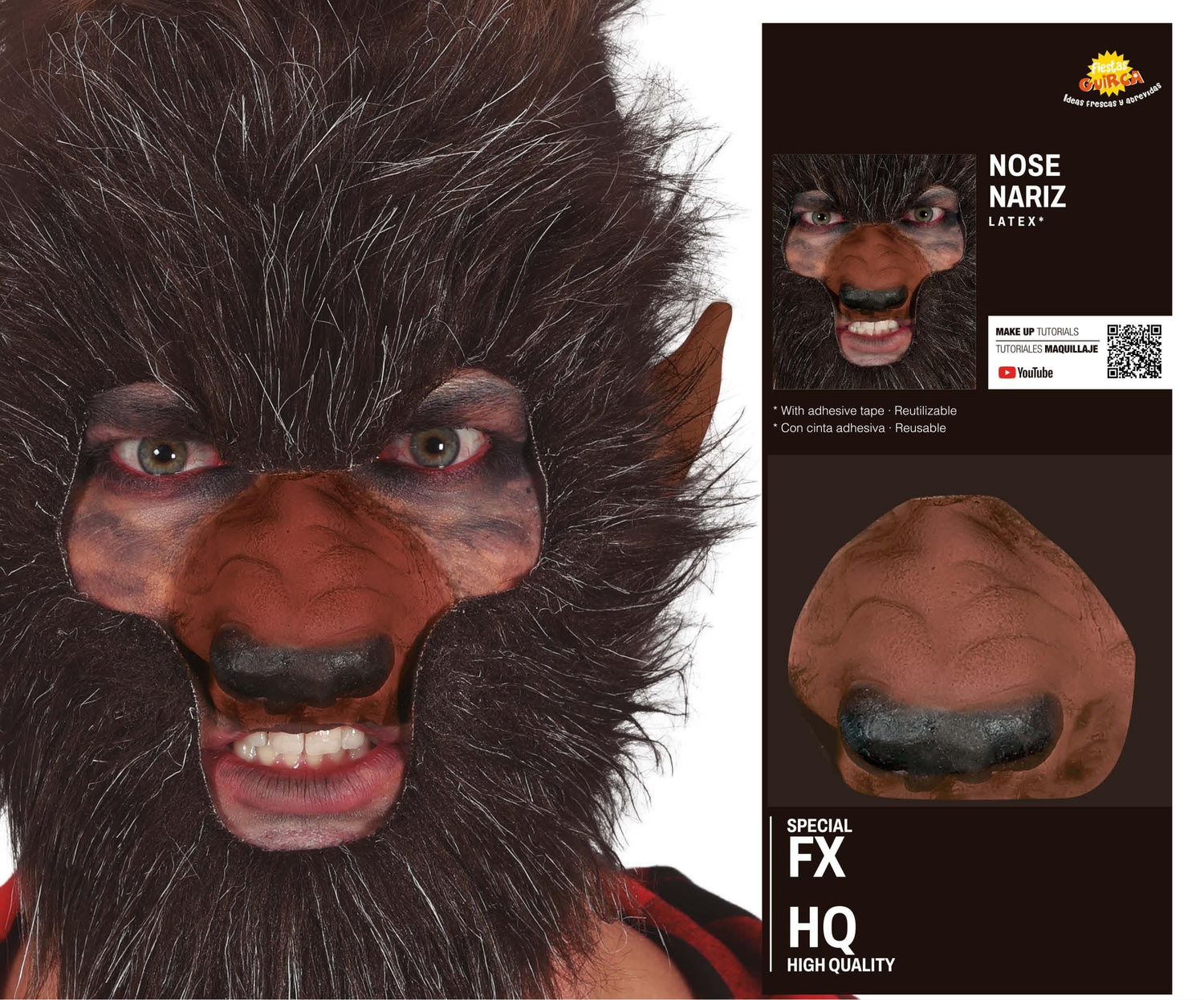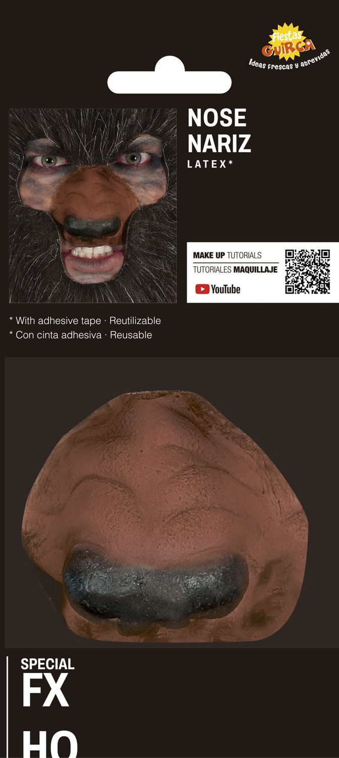 - Nos lateksowy, który imituje pysk wilkołaka lub innego dzikiego zwierzęcia z lekko wydłużoną kufą. Nos ma brązowy kolor z przetarciami w ciemnobrązowym kolorze. Mocowany na załączonej taśmie samoprzylepnej.