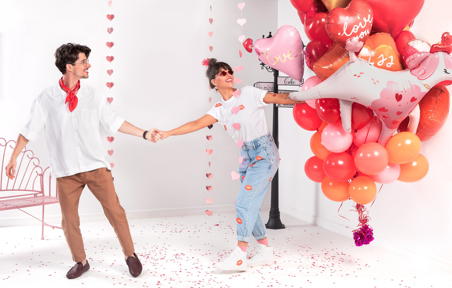 Balon foliowy w kształcie serca ze strzałą Amora. Balon jest w różowym kolorze z matową powłoką. Posiada dwustronnie złoty, lustrzany napis LOVE. Balon dodatkowo ozdobiony jest strzałą bożka miłości z grotem w kształcie czerwonego serduszka. Idealny do dekoracji na wiele romantycznych okazji np. Walentynki, ślub lub wesele.