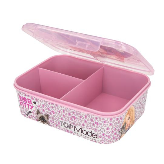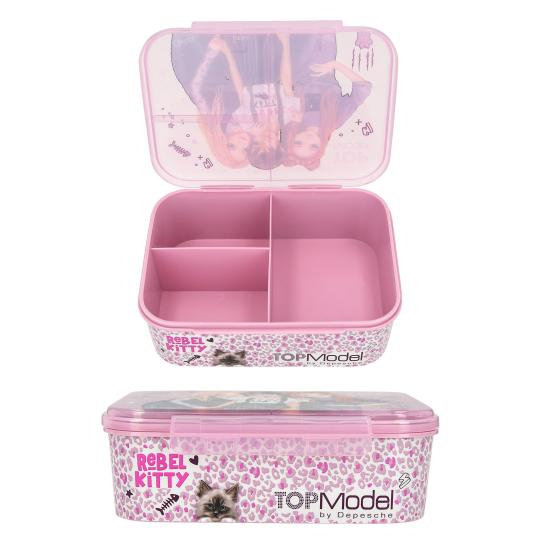 • Śniadaniówka REBEL KITTY posiada wyjątkowy design Rebel Kitty, solidne wykonanie i bezpieczne zamknięcie, idealnie sprawdzi się na szkolne przekąski. Lekka, trwała i bez BPA – must-have dla każdej fanki Top Model!