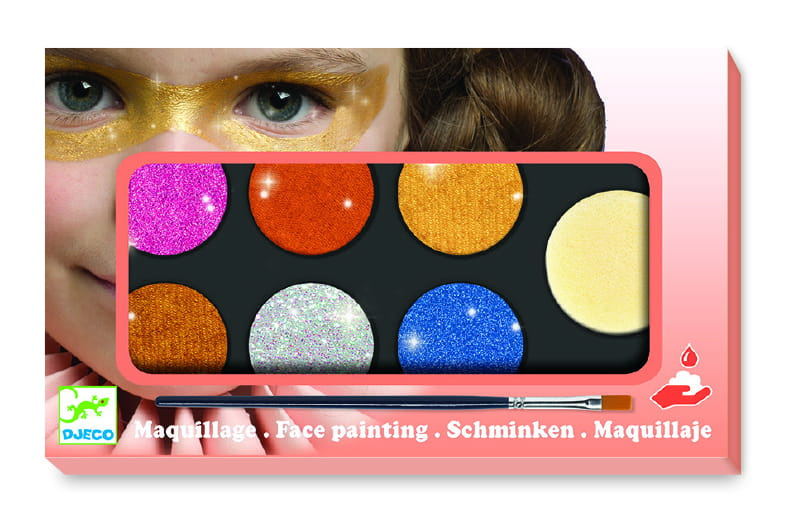 - Zestaw zawiera 6 kolorowych farbek w metalizowanych kolorach: złoty, srebrny, niebieski, czerwony, różowy, brązowy.