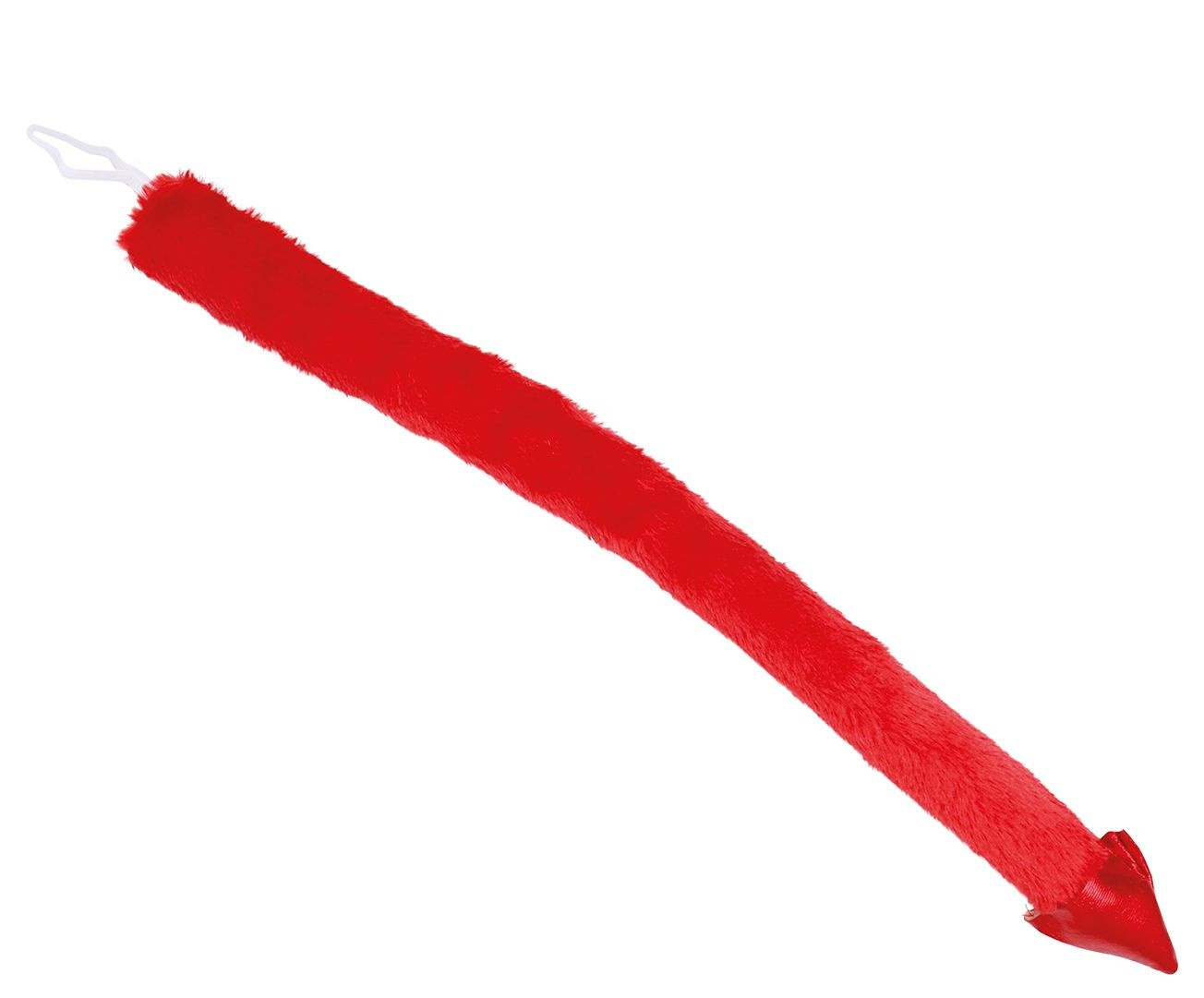 • Ogonek w czerwonym kolorze wykonany jest z miękkiego, pluszowego materiału z błyszczącym, zakończonym grotem w kształcie strzałki. Mocowany do paska lub do stroju na gumce. Długość 45 cm