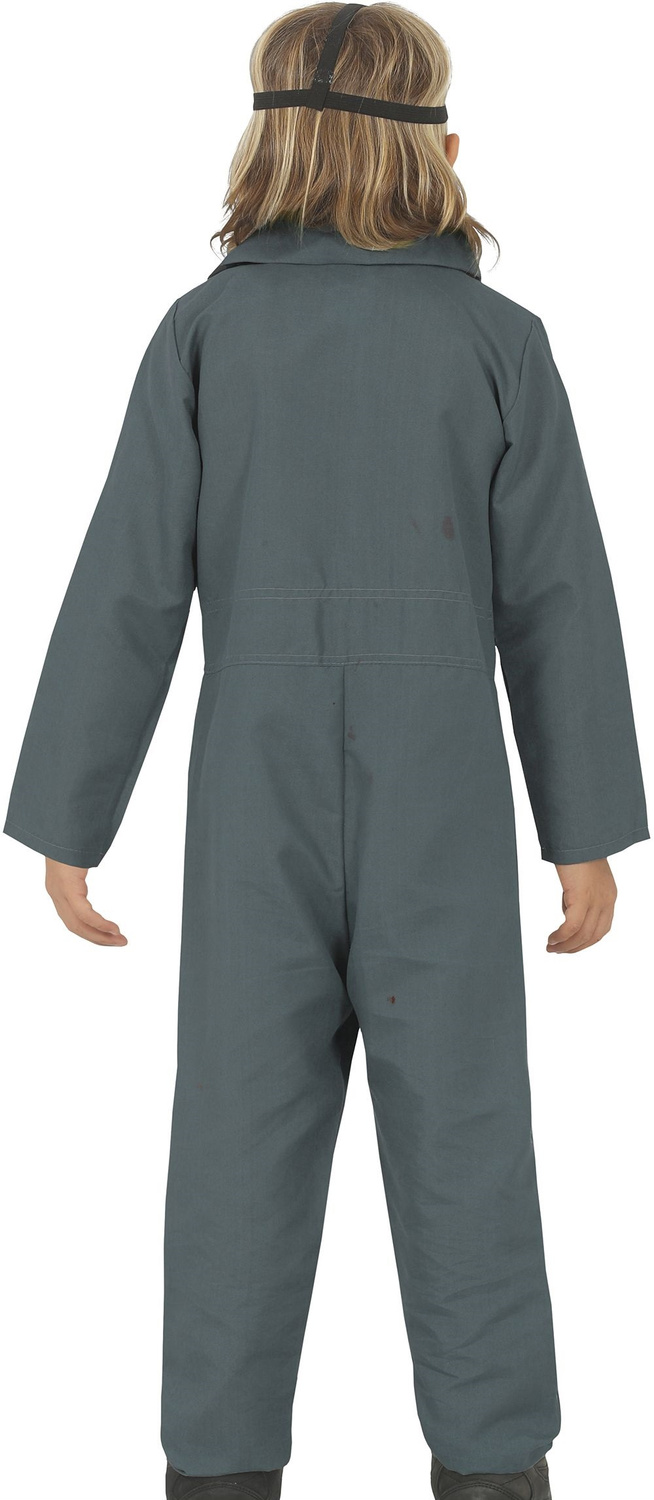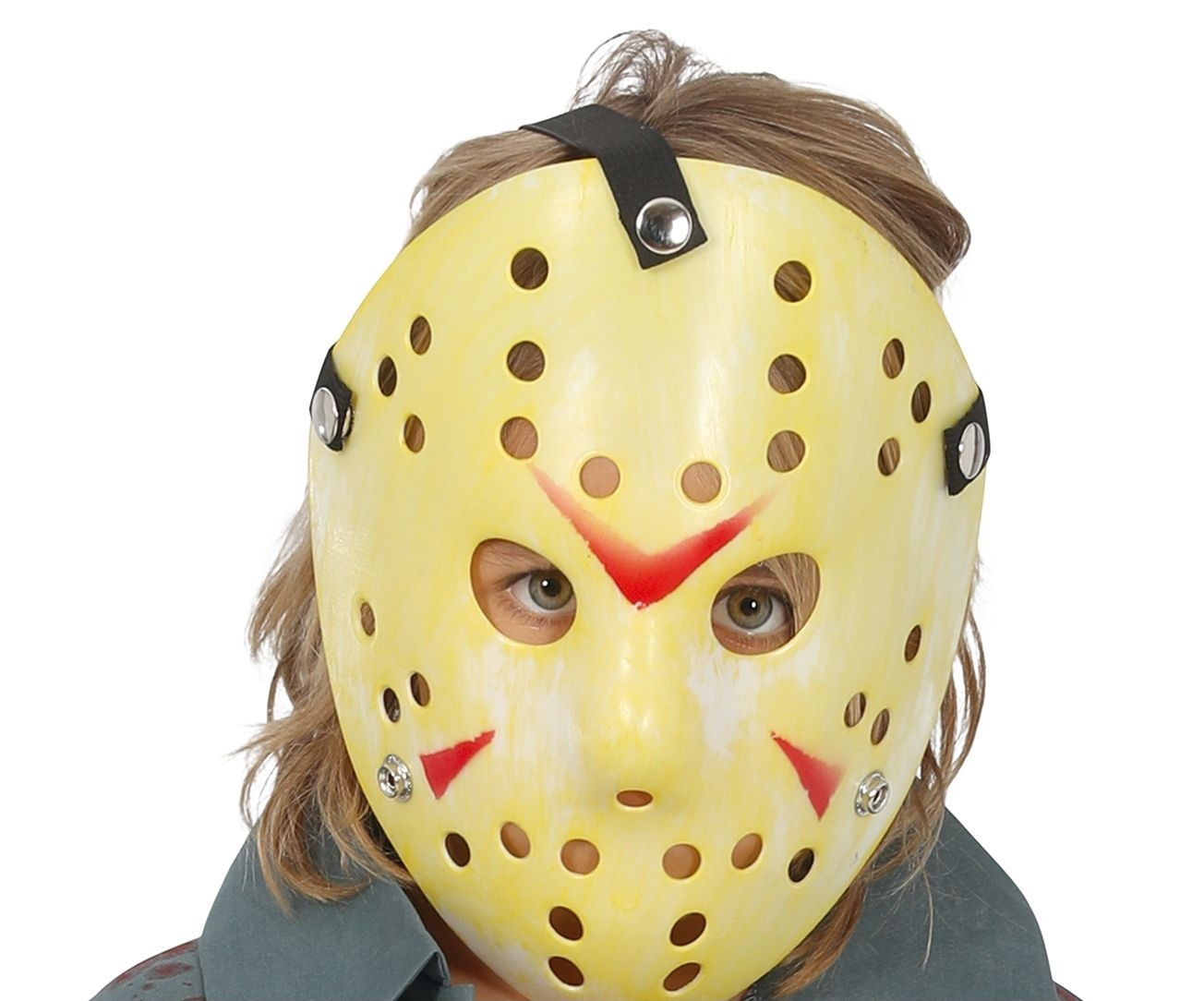 Kostium mordercy rodem z horroru składa się jednoczęściowego kombinezonu, który wykonany jest z materiału w kolorze niebieskoszarym. Na froncie strój zdobiony jest czerwoną "krwią". Kombinezon posiada długie rękawy i nogawki, zapinany jest z przodu na rzep. Na piersiach dwie kieszenie. Strój jest prosty i luźny, zapewniający komfort noszenia. Idealny jako baza do różnorodnych charakteryzacji na Halloween, sprawdzi się w stylizacji morderczego więźnia, mechanika czy szaleńca. W zestawie z maską hokeisty. Maska jest w żółtym kolorze i posiada wiele otworów na brodzie, policzkach i czole. Mocowana na gumach z regulacją na napy.