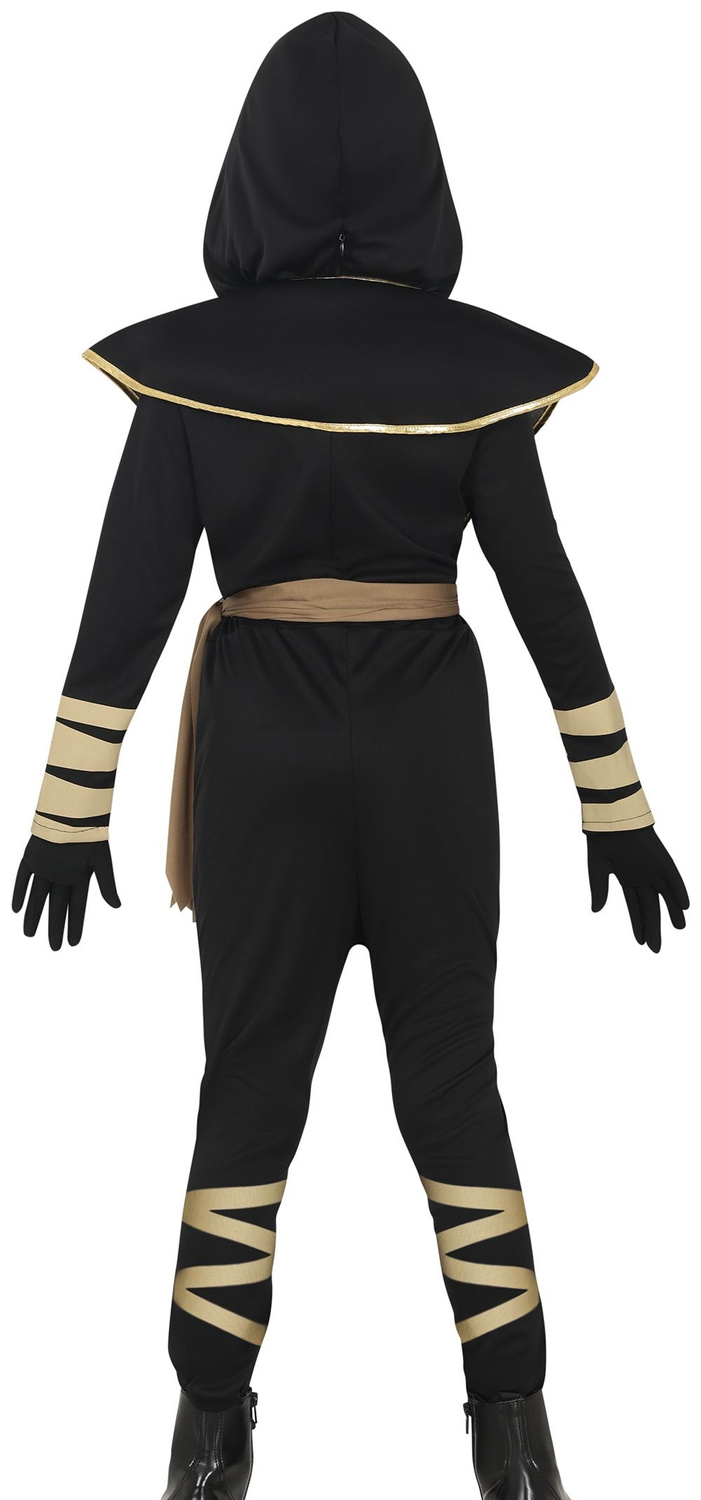 - Kostium dziecięcy wojownika NINJA w złoto - czarnym kolorze. W komplecie: kombinezon z kapturem, pas, maska. Sprawdzi się dla każdego małego Karate Kid, bajkowego Ninjago lub innego wojownika.