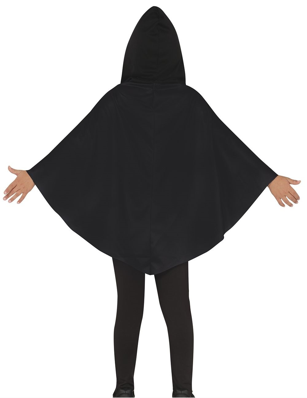 - Ponczo z kapturem w czarnym kolorze. Nie posiada rękawów, ani łączenia pod pachami. Peleryna posiada nadruk świecącej halloweenowej dyni. Tył peleryny gładki, czarny. Zakładana przez głowę.
