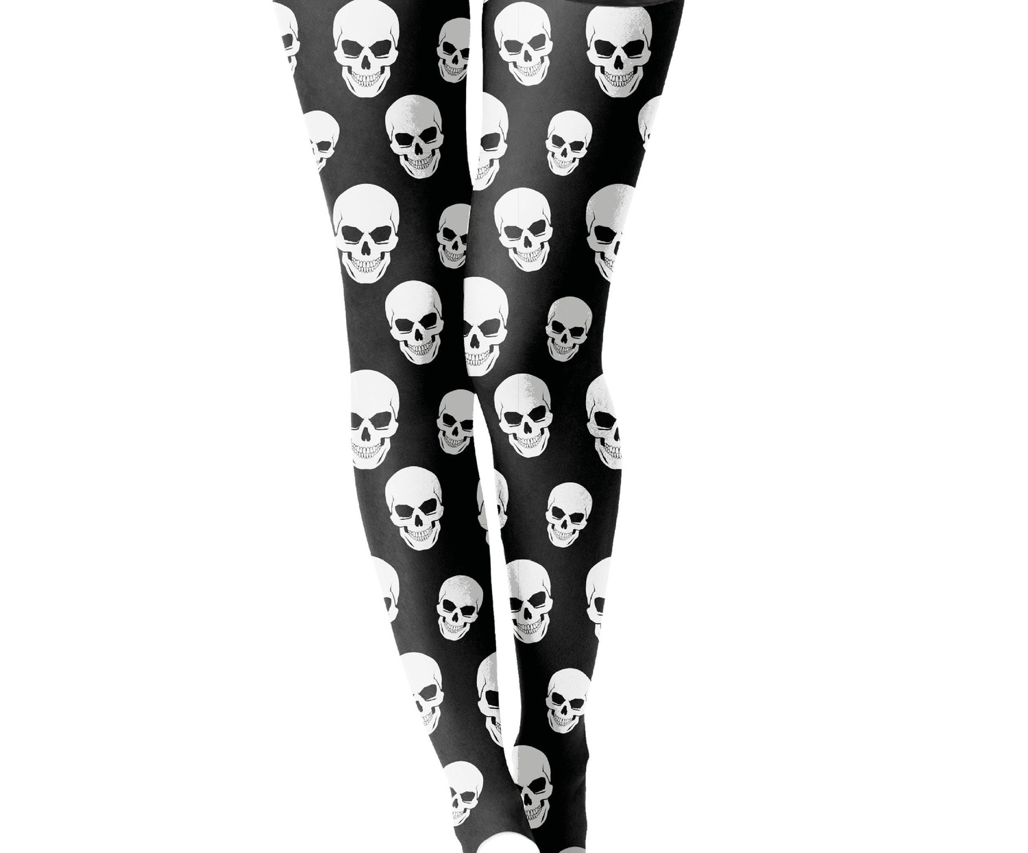 • Rajstopy w czarnym kolorze z nadrukiem białych czaszek z przodu, tył gładki czarny. Rozmiar uniwersalny - pasuje na większość osób. Super dodatek do stroju wiedźmy, wampirzycy, szkieletu na Halloween.