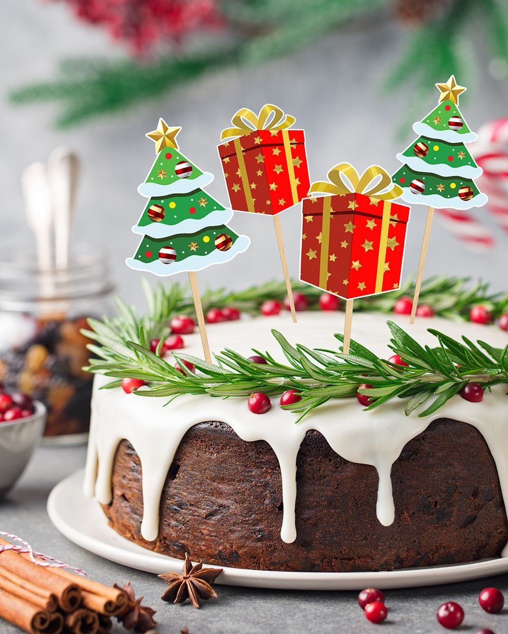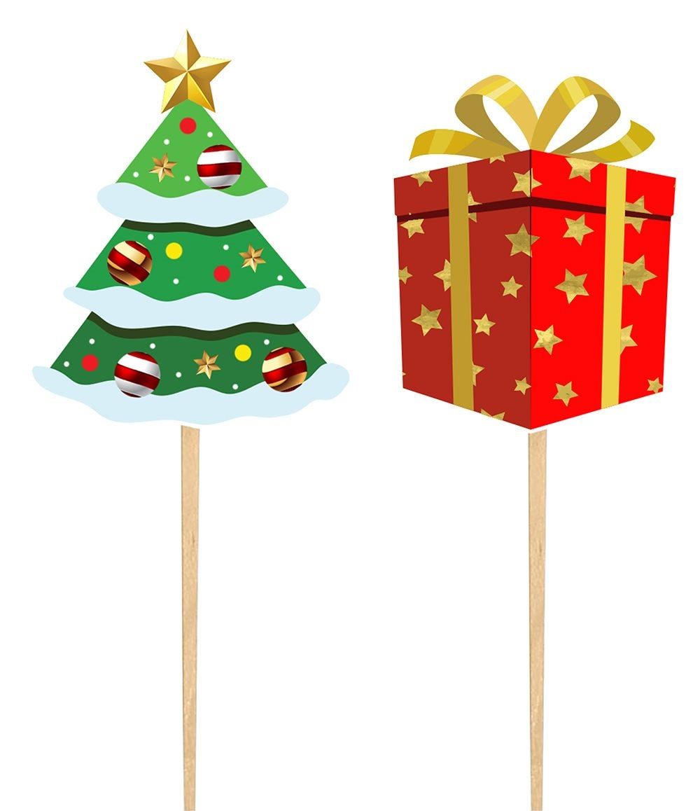 - Zestaw pikerów bożonarodzeniowych do dekoracji świątecznych wypieków. Dekoracje wykonane są z tektury i umieszczone na drewnianych wykałaczkach o długości 10cm. Toppery znakomicie sprawdzą się także jako element dekoracji np. stroika świątecznego.