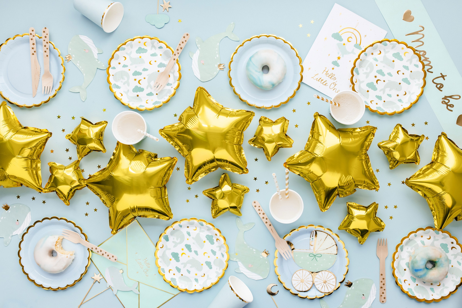 - Foliowy balon w kształcie gwiazdki w złotym kolorze, który lekko połyskuje. Znakomita dekoracja na wiele okazji: urodziny, wieczór panieński i kawalerski, Nowy Rok. Balony przeznaczone do wypełniania powietrzem.