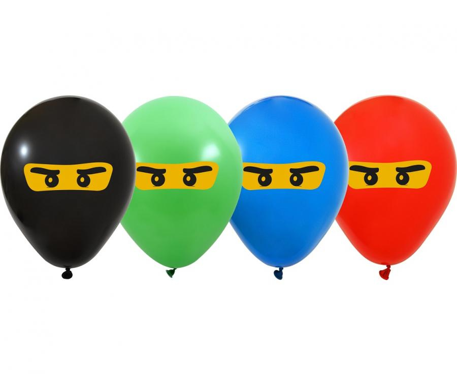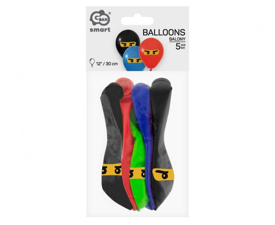 - Kolorowe balony gumowe z motywem ninja. Balony przedstawiają charakterystyczne, groźne oczy ninja nadrukowane na tle w intensywnych kolorach. Średnica 30cm.