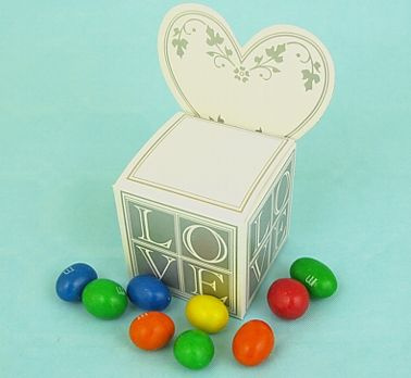 Pudełeczka z wizytówką w kształcie serca. Na pudełku z każdej strony widnieje napis LOVE. Idealne, aby podziękować gościom weselnym za przybycie na uroczystość ślubu. Wizytownik należy wypisać we własnym zakresie.