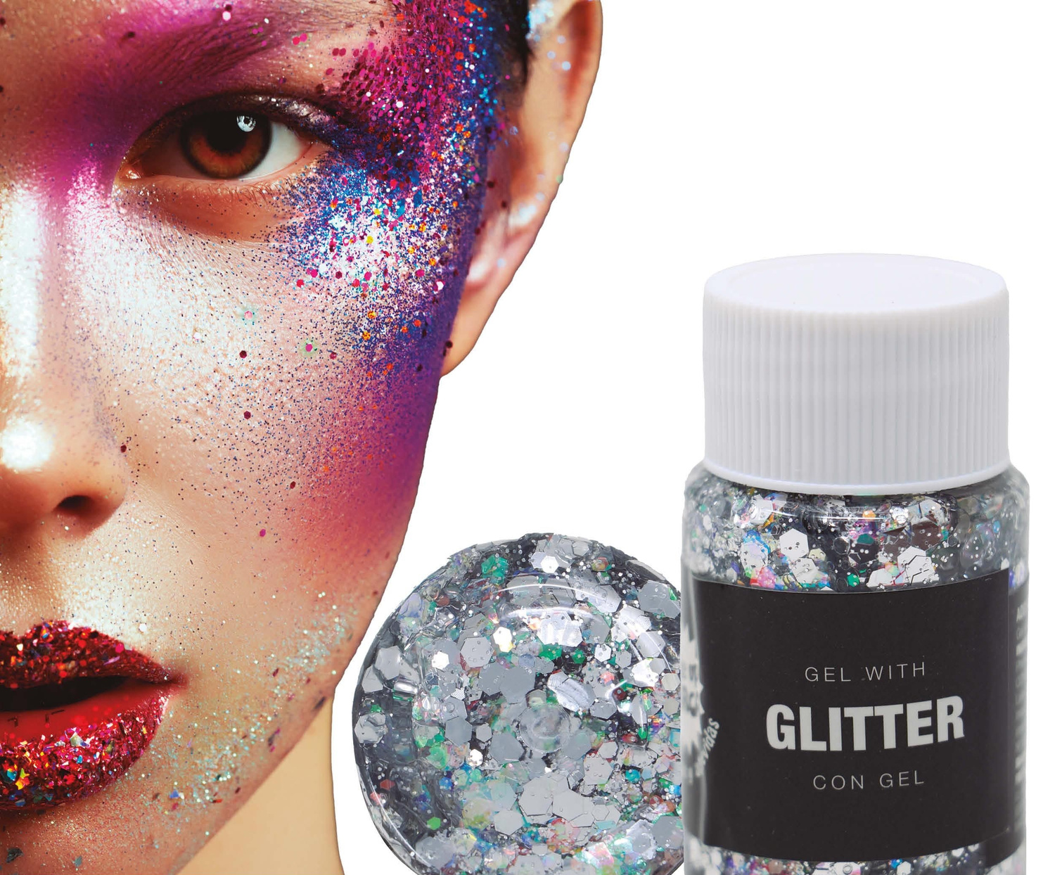 Intensywnie błyszczący żel z brokatem przeznaczony do dekoracyjnego makijażu twarzy i ciała. Idealny na festiwale, imprezy tematyczne, karnawał, Halloween czy sesje zdjęciowe. Produkt zawiera żelową bazę ułatwiającą aplikację i utrzymywanie się błyskotek na skórze bez konieczności stosowania kleju.