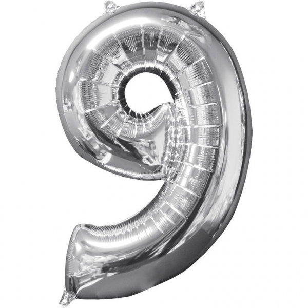 Srebrny balon foliowy w kształcie cyfry 9. Złożony z innymi cyframi tworzy dowolny numer. Znakomity aby podkreślić uroczystość dziewiątych urodzin bądź rocznicy.