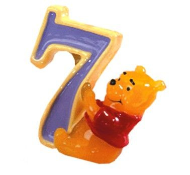 • Świeczka urodzinowa z Kubusiem Puchatkiem w kształcie cyferki 7. Świeczka mocowana na torcie urodzinowym lub rocznicowym. Skompletowana z innymi cyframi tworzy dowolny numer.