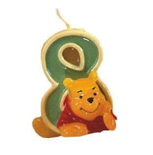 - Świeczka urodzinowa z serii "Kubuś Puchatek" w kształcie cyferki 8 z leżącym Kubusiem.