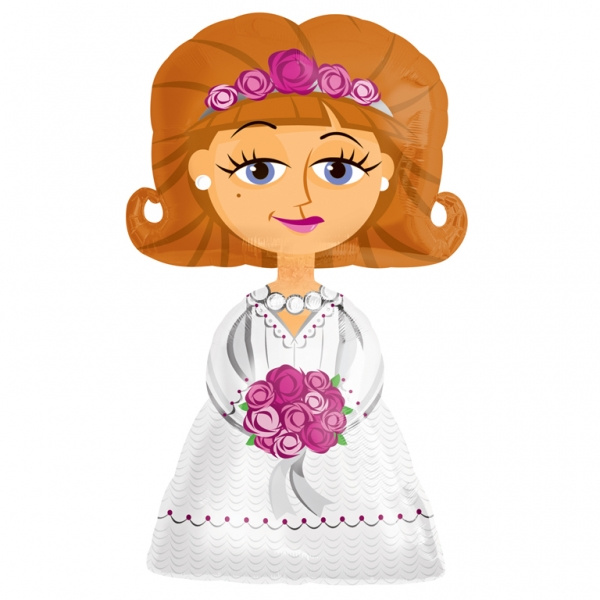 Balon foliowy w kształcie Panny Młodej o wysokości 122cm i szerokości 71cm stanowi piękną dekorację podczas tego wyjątkowego dnia ślubnego, a także może być oryginalnym prezentem dla przyszłej Panny Młodej na wieczór panieński. Panna Młoda składa się z dwóch balonów: tułów oraz głowa.