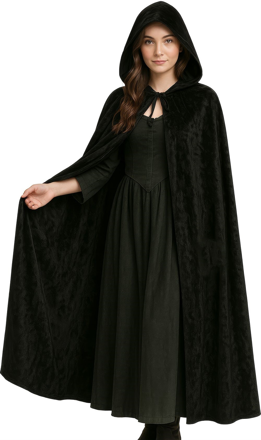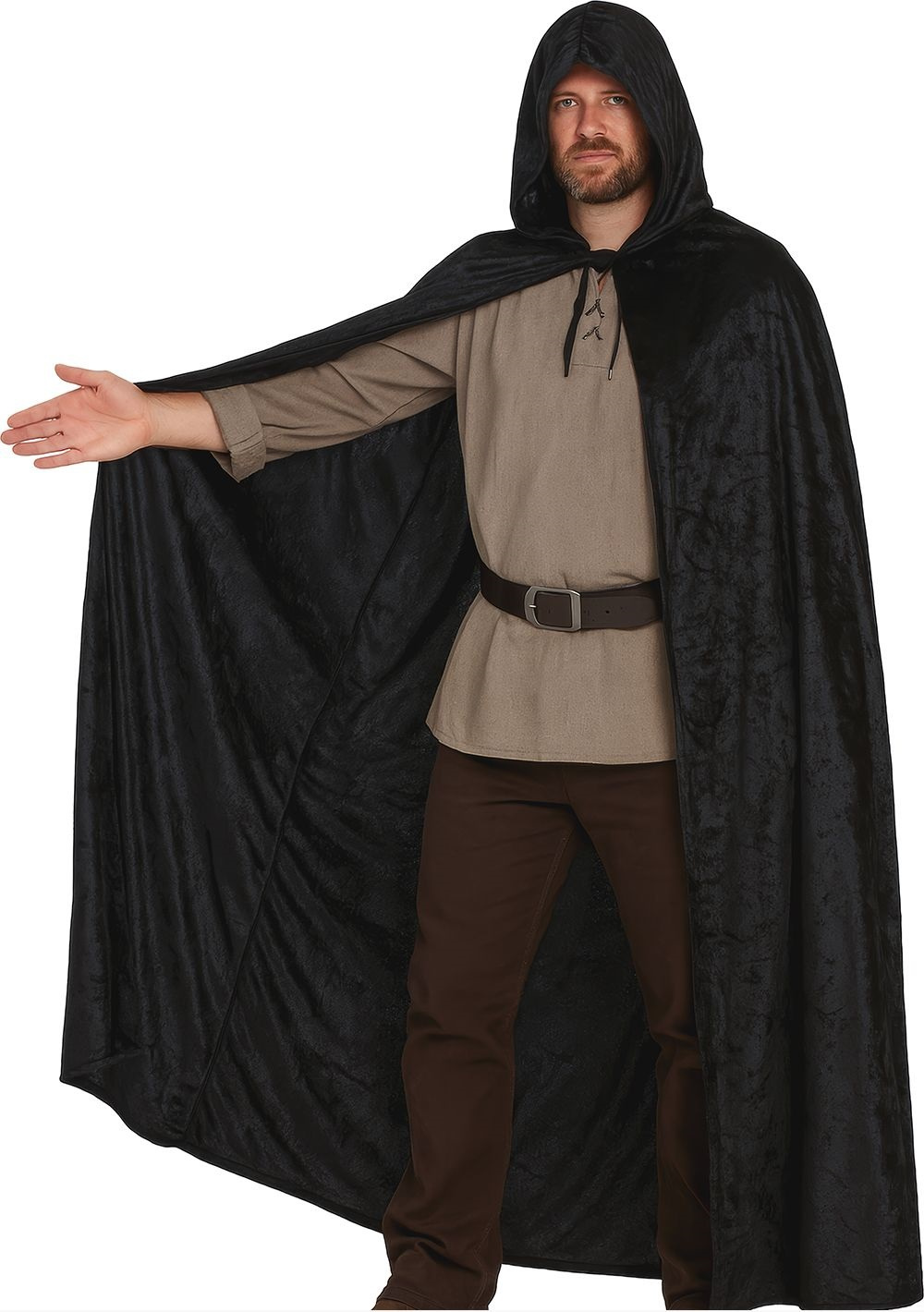 - Czarna peleryna do stroju wampira, Draculi, Batmana, magika czy angielskiego lorda. Wykonana z weluru, posiada kaptur. Długość całkowita 135 cm