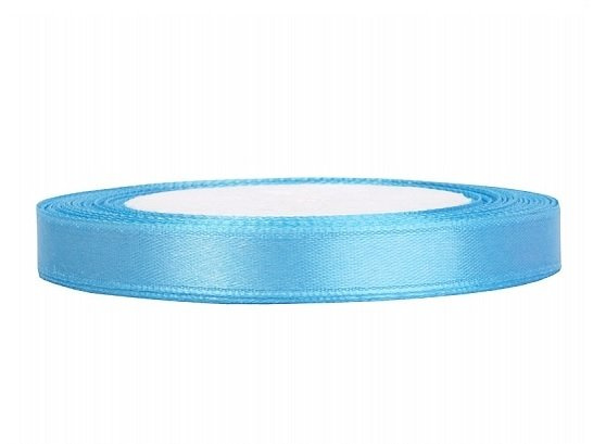 - Tasiemka atłasowa w kolorze niebieskim - odcień błękitny. Do wykorzystania jako dekoracja na Baby Shower, chrzciny, komunię, ślub czy inne okazje.
