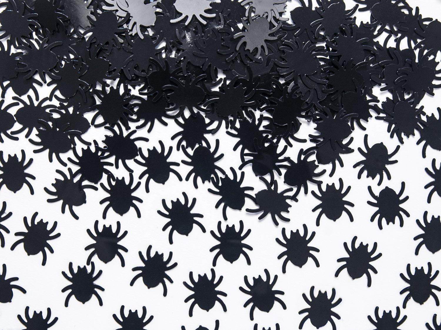 Konfetti ozdobne wykonane z czarnego tworzywa. Pająki doskonale nadaje się do udekorowania stołu podczas zabawy z okazji Halloween. Konfetti można również wykorzystać do stworzenia oryginalnych zaproszeń, winietek albo menu.