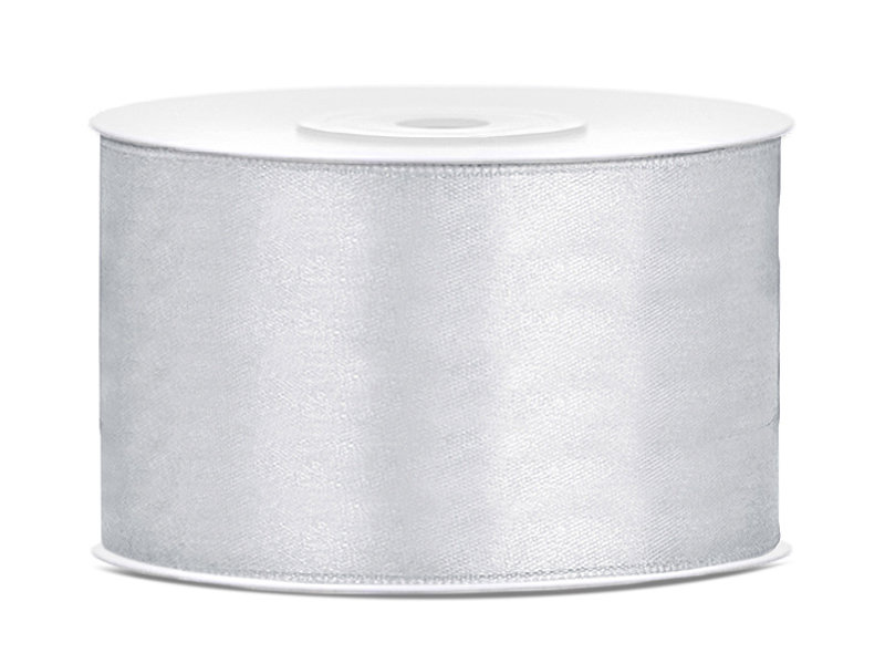 - Tasiemka atłasowa w kolorze jasno szarym z połyskiem. Do wykorzystania jako dekoracja na różne okazje: ślub, urodziny, karnawał. Sprawdzi się także doskonale do włosów dla dziewczynek lub jako dekoracja do opasania tortu.