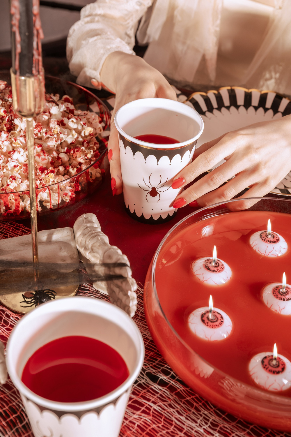 Kubeczki papierowe z serii "Pająk" o pojemności 400 ml, idealne na napoje podczas przyjęcia w klimacie Halloween. W zestawie znajdują się dwa eleganckie wzory – czarne i beżowe – ozdobione złotym, lustrzanym nadrukiem pająka oraz wykończone dekoracyjną obwódką z błyszczącym złotym rantem.
