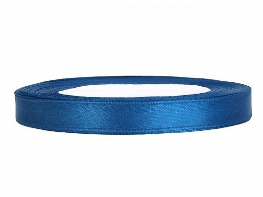 Tasiemka satynowa w kolorze niebieskim w ciemniejszym odcieniu, ładnie połyskuje. Wstążka do wykorzystania jako dekoracja na Baby Shower, chrzest, komunię, ślub, do prezencików dla gości weselnych lub każdą inną okazję.