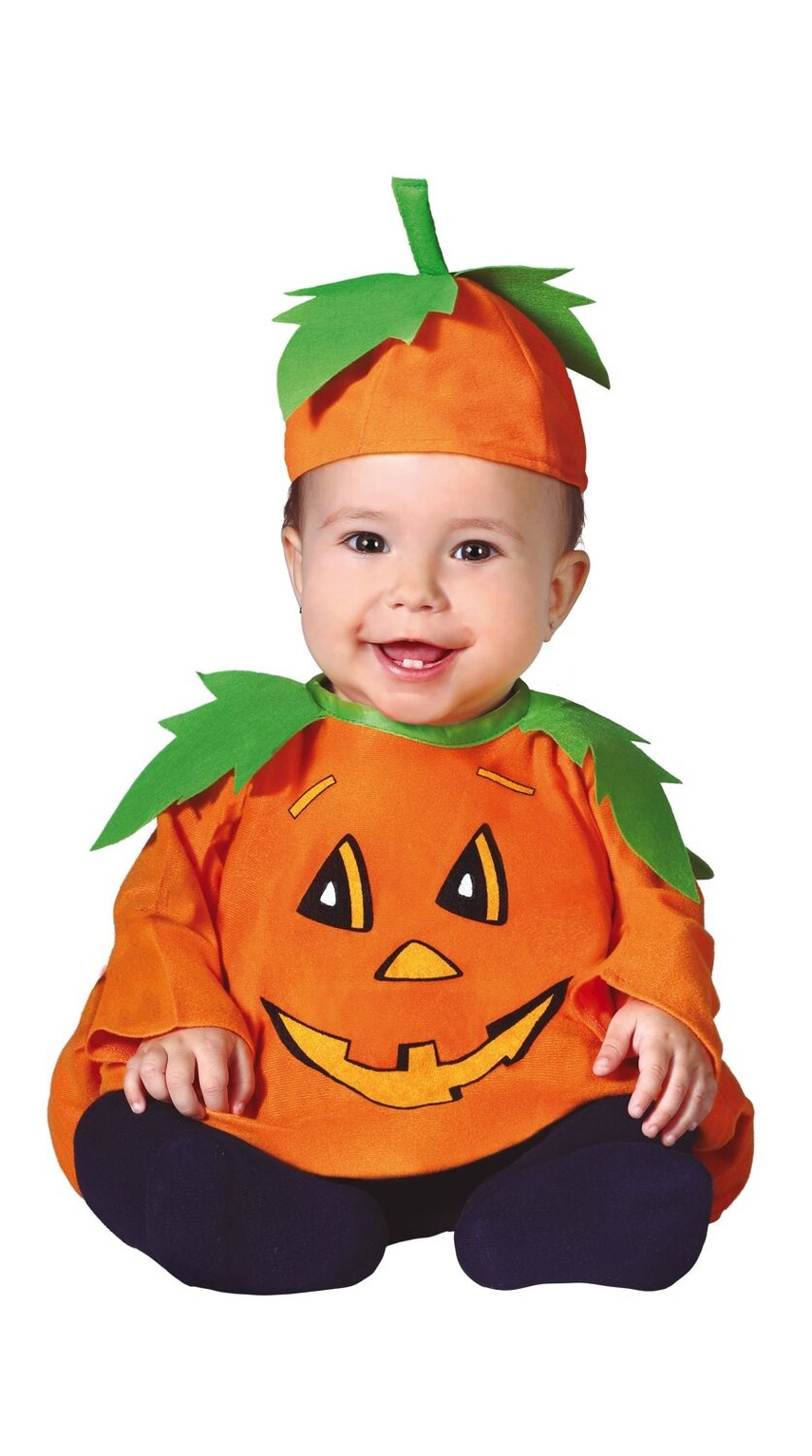 Kostium znakomity na Halloween dla najmłodszych. W zestawie bluza - tunika z długim rękawem. Wokół szyi wykończona zieloną tasiemką i dwoma listkami z filcu. Bluza posiada wypełnienie na obwodzie, dzięki czemu jest jak typowa dynia. Na przodzie dodatkowo nadruk wydrążonej halloweenowej dyni. Czapeczka podobnie jak tunika w kolorze pomarańczowym, na szczycie posiada przyszyte dwa zielone listki z filcu. Nie posiada dodatkowych mocowań.