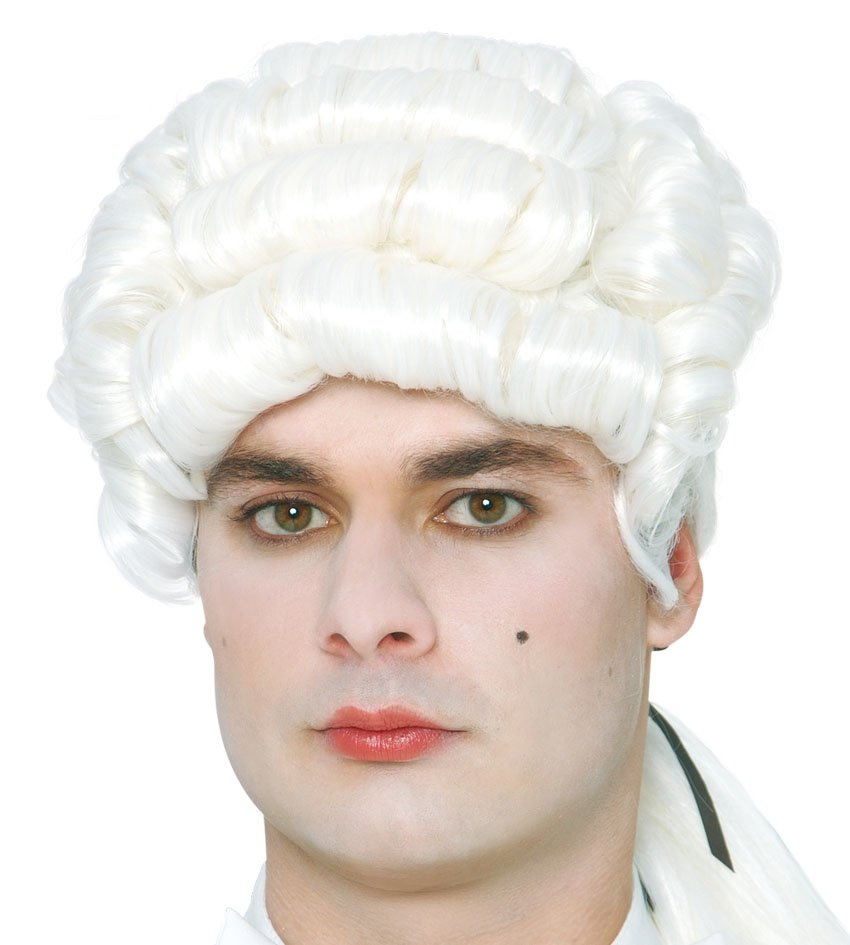 Peruka z białymi włosami znakomicie uzupełniająca charakteryzację dawnego sędziego, prawnika, francuskiego markiza, lorda, marynarza z XVIII wieku, a nawet samego Napoleona. Fryzura z lokami na czubku głowy z tyłu włosy długie i proste zaczesane w kucyk, spięte czarną wstążką.