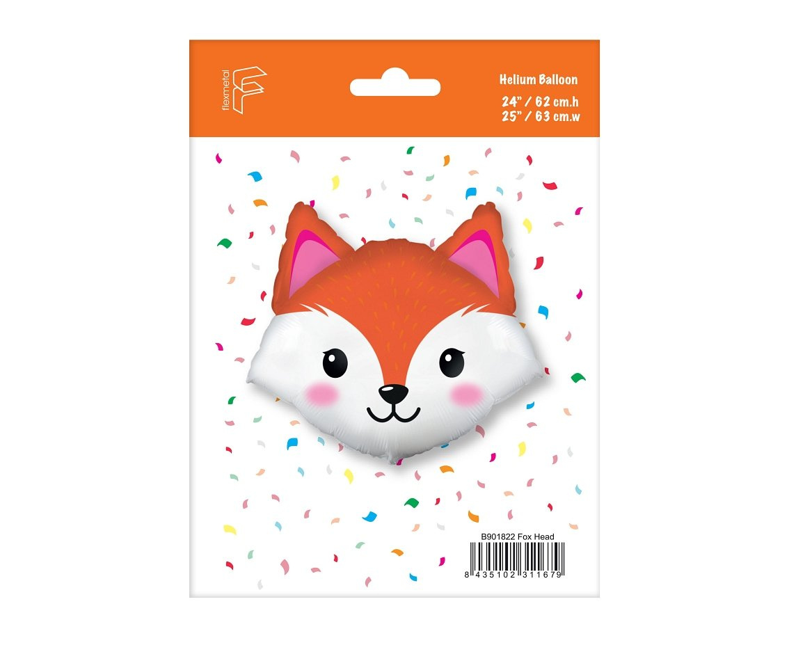 Balon foliowy w kształcie głowy lisa. Balon posiada dwustronnie taki sam nadruk, sprawdzi się na przyjęciach w stylu zwierzątka, leśne czy bajkowe postacie, a nawet wieś lub farma. Balon doskonale nadaje się do pompowania helem - unosi się wówczas w powietrzu.