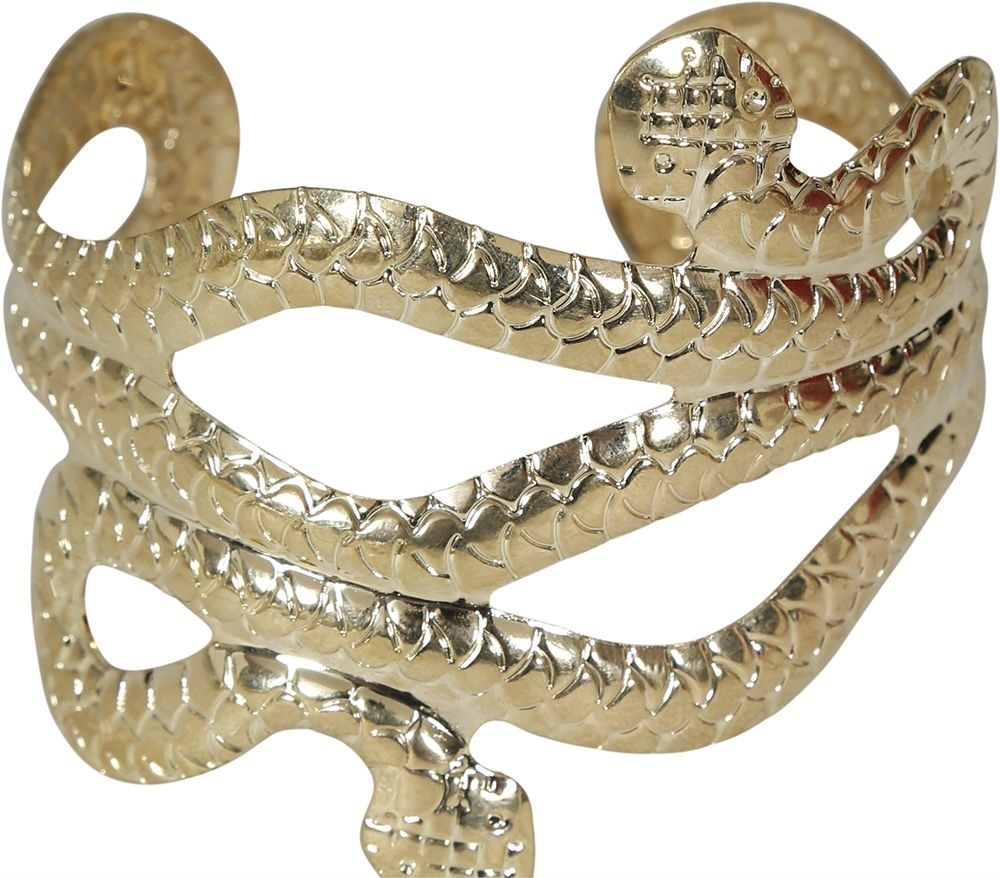 - Złota bransoleta w kształcie wijącego się węża godna starożytnej bogini, królowej Egiptu czy greczynki. Bransoleta wykonana z metalu, nie posiada zapięcia. Może być dostosowana do obwodu przez rozciągnięcie lub ściśnięcie metalu.