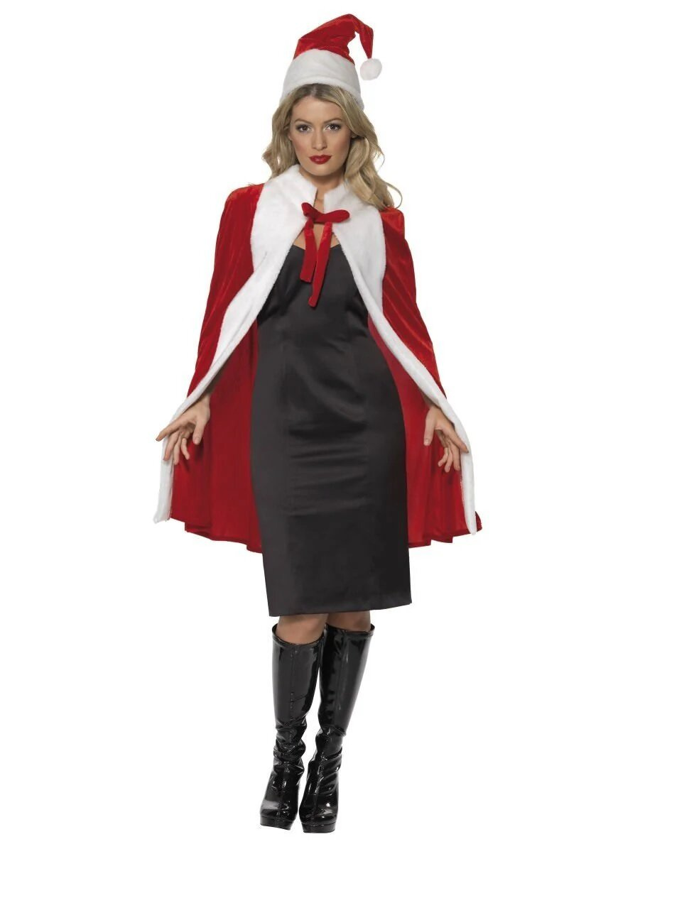 - Peleryna świąteczna dla Pani Mikołajowej, wykonana z miękkiego materiału.