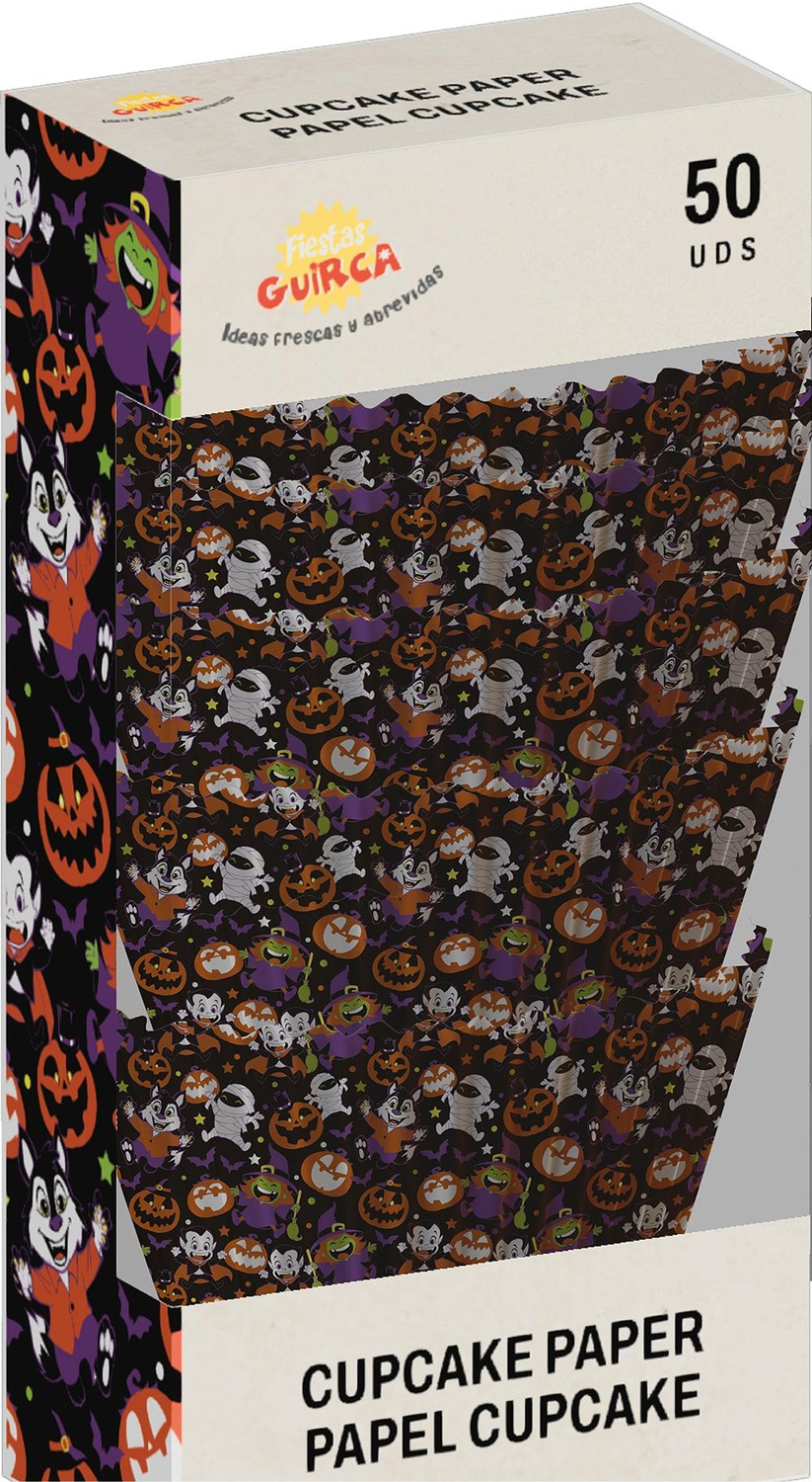 - Papierowe foremki do muffinek lub babeczek z motywem Halloween. Papilotki mogą także służyć do podawania przekąsek typu orzeszki, popcorn, słodkie migdały itp w porcyjnej wersji. Opakowanie zawiera 50 sztuk.