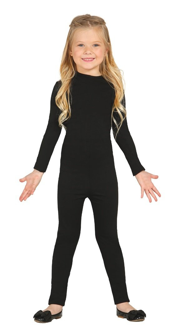 Czarny kombinezon idealny jako podłoże do wielu charakteryzacji. Noszony sam będzie idealny jako przebranie włamywacza. Z akcesoriami może być bazą do stroju kota, śmierci, człowieka gumy. Kombinezon jest jednoczęściowy uszyty z miękkiego, mięsistego materiału, zapinany z przodu na zamek. Przebranie ma długi rękaw i nogawki.