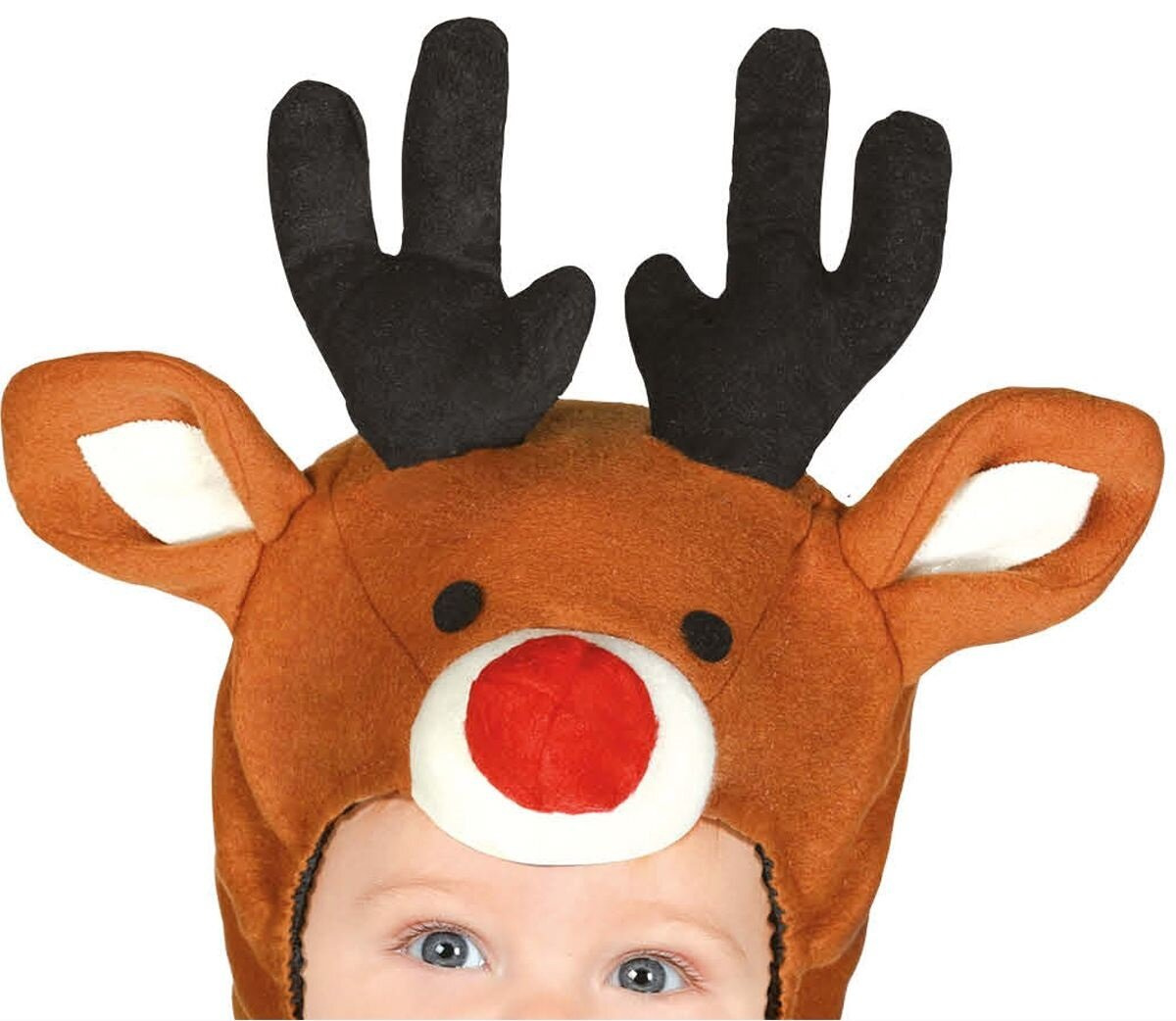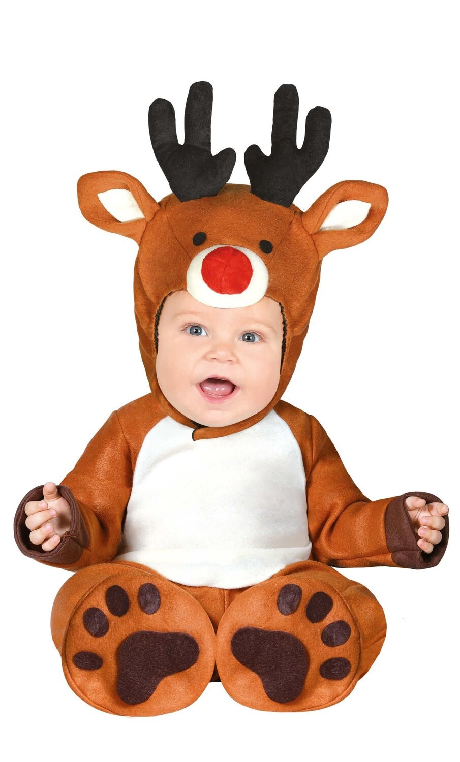- Jednoczęściowy kombinezon w zestawie z kapturem oraz stopkami. Kaptur posiada doczepione rogi, uszy i czerwony nos. Przebranie zapinane z tyłu na suwak. Idealny na świąteczne pamiątkowe zdjęcie z humorem lub balik przebierańców - Rudolf, Kometa.