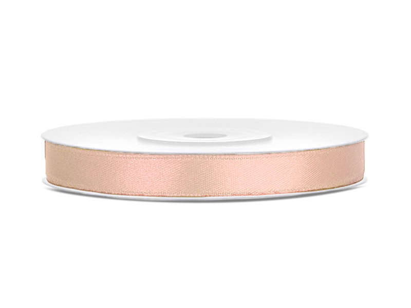Tasiemka satynowa w kolorze kremowym w jasnym brzoskwiniowym odcieniu ładnie połyskuje. Wstążka do wykorzystania jako dekoracja na Baby Shower, chrzest, komunię, ślub, do prezencików dla gości weselnych lub każdą inną okazję.