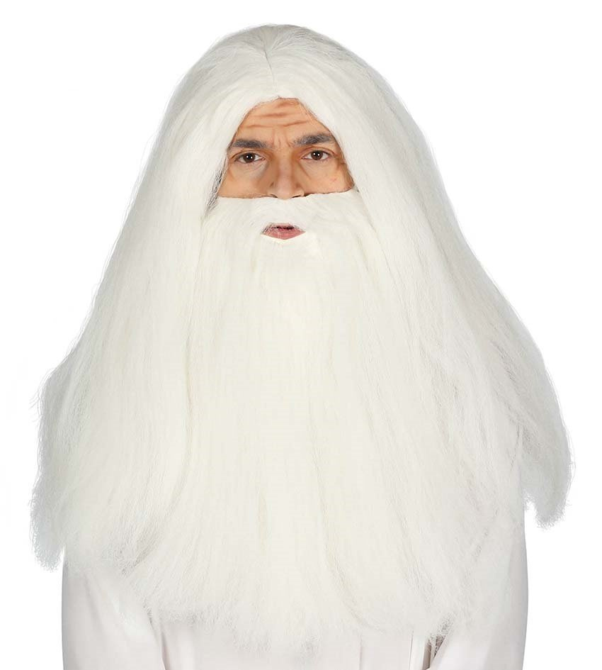 - Uzupełnienie charakteryzacji przebrania mędrca, siwego maga, czy głównej postaci z bajki "Było sobie życie". W komplecie peruka oraz broda w białym kolorze, wykonane ze sztucznych prostych włosów.