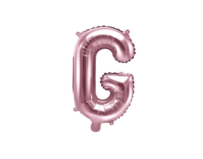 - Balon foliowy w kształcie literki "G" w ciekawym kolorze złotego różu. Złożony z innymi literami tworzy dowolny wyraz. Balon posiada otworki dzięki którym można przywiązać go np. do ściany czy futryny.
