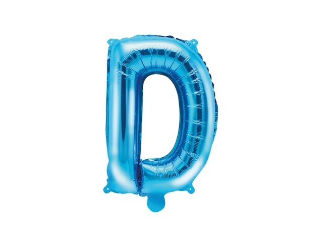 - Balon foliowy w kształcie literki "D" w niebieskim kolorze. Złożony z innymi literami tworzy dowolny wyraz. Balon posiada otworki dzięki którym można przywiązać go np. do ściany czy futryny.