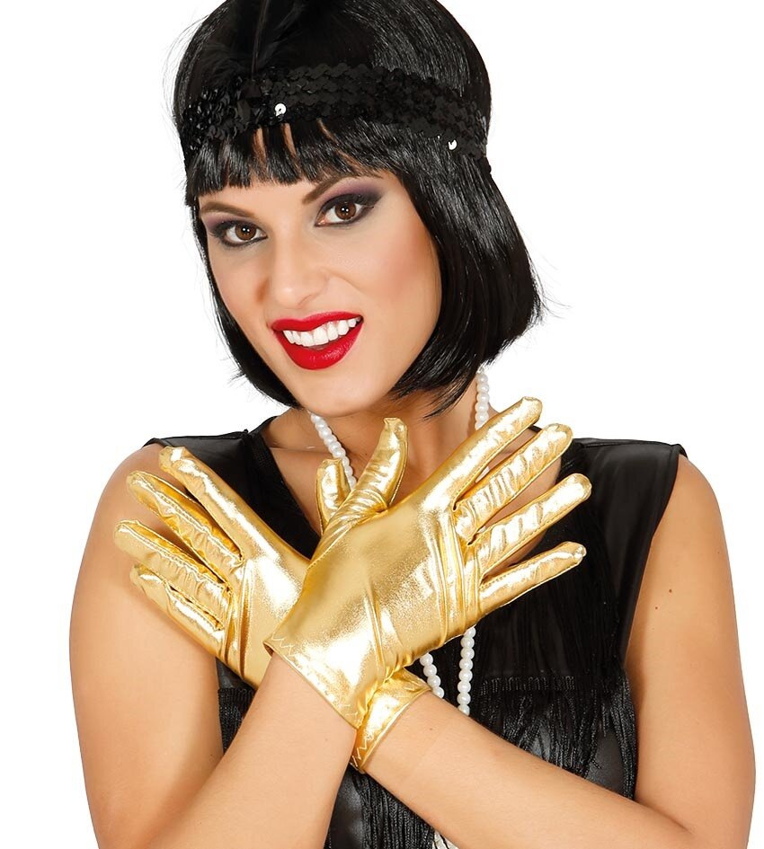 Rękawiczki o długości za nadgarstek w kolorze złotym - połyskującym to idealny dodatek do kostiumu Glamour Girl, damy z lat 20-tych, pięknej anielicy czy robota lub ufoludka z kosmosu. Rękawiczki wykonane z cienkiego materiału, elastyczne.