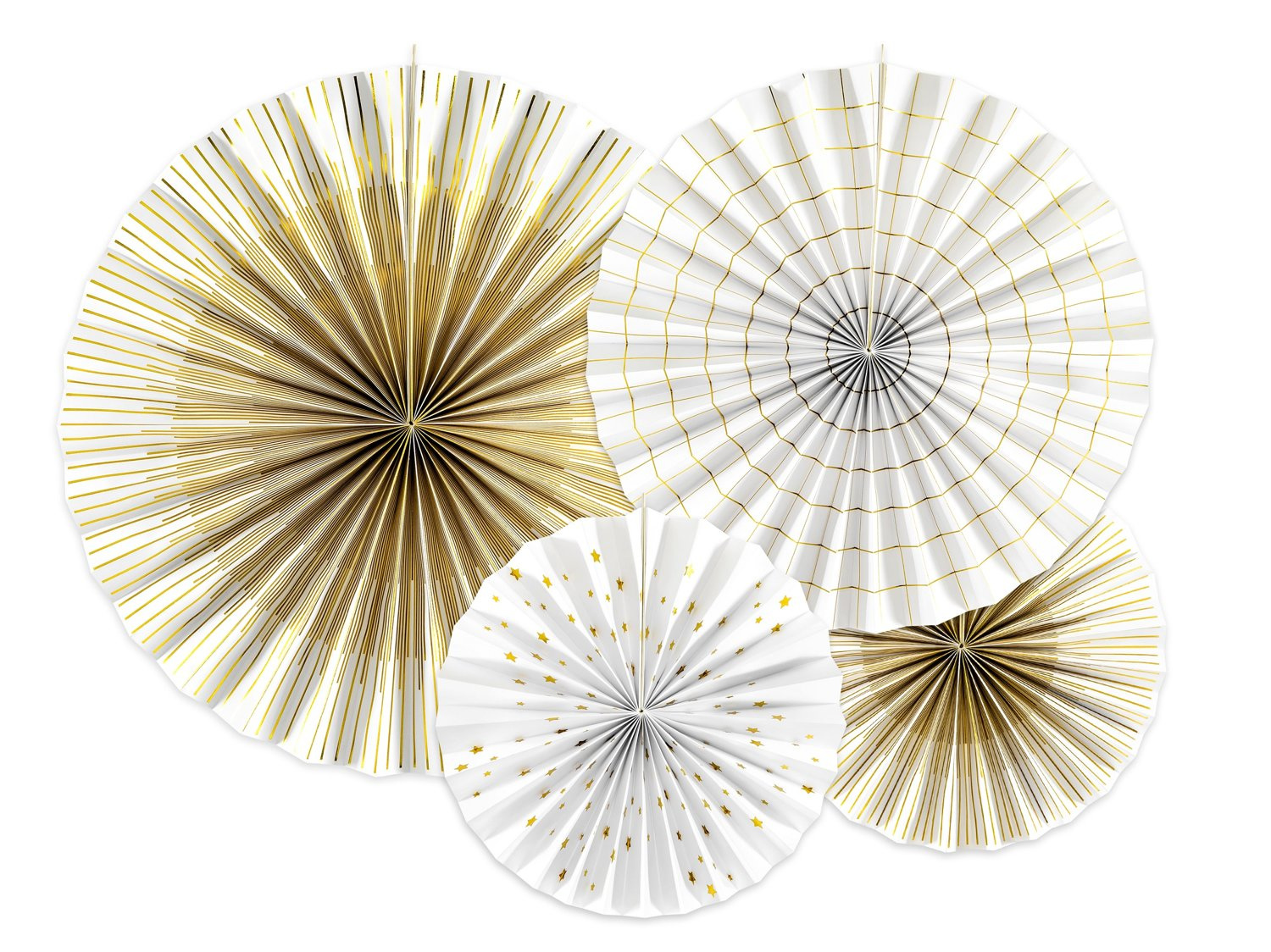 Opakowanie zawiera 4 rozkładane dekoracje w 3 rozmiarach: średnica 2 x 23 cm, 32 cm, 40 cm.
