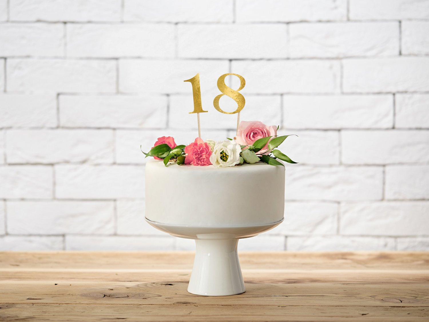 Eleganckie pikery trzymające złote cyfry w lustrzanym kolorze. Nadruk jest jednostronny, tył biały. Wykałaczki wykonane są z drewna o długości 20 cm. Znakomita dekoracja tortu, wypieków, koreczków na przyjęciach urodzinowych i rocznicowych, z powodzeniem przyozdobią bukiet podkreślający jubileusz lub będą służyć jako numeracja stołów weselnych.