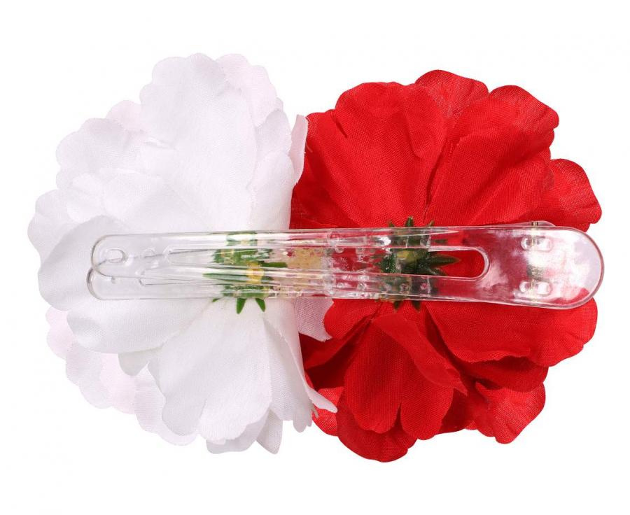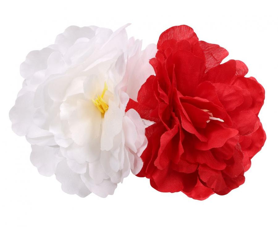 Podkreśl wyjątkowy charakter każdej uroczystości dzięki eleganckim biało-czerwonym kwiatom. Sprawdzi się szczególnie na okazje patriotyczne, podczas obchodzenia święta niepodległości lub innych narodowościowych. Znakomita także dla tancerki czy hawajki. Wykonane z delikatnej, ale trwałej tkaniny tekstylnej, prezentują się niezwykle naturalnie i efektownie. Kwiatki przymocowane są na przejrzystej spince a'la krokodylek. Pięknie przyozdobi włosy lub element garderoby.