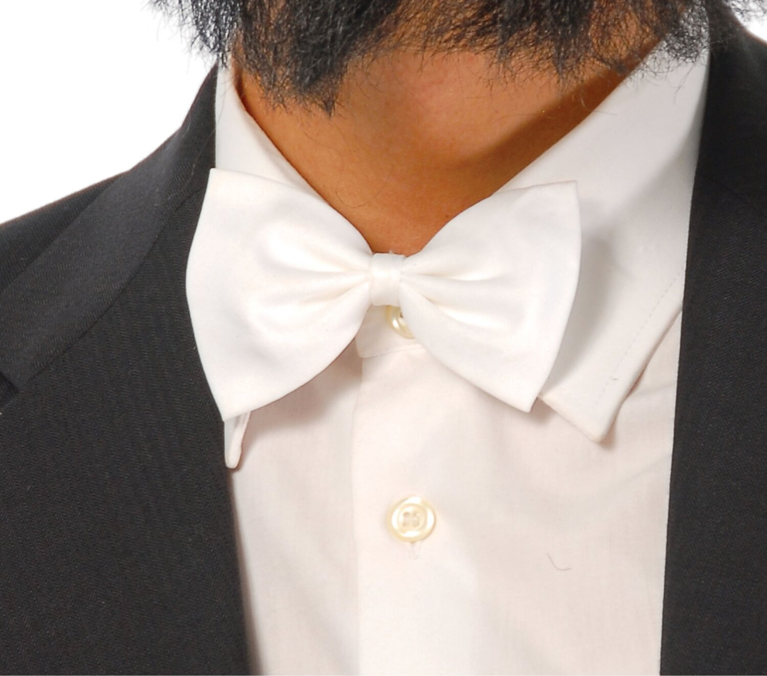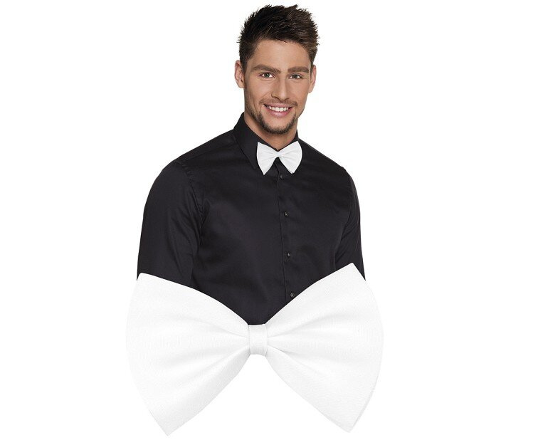 • Biała, satynowa muszka z zapięciem i regulacją obwodu. Klasyka dla dżentelmena, lorda i pana wyższych sfer, a nade wszystko gangstera.